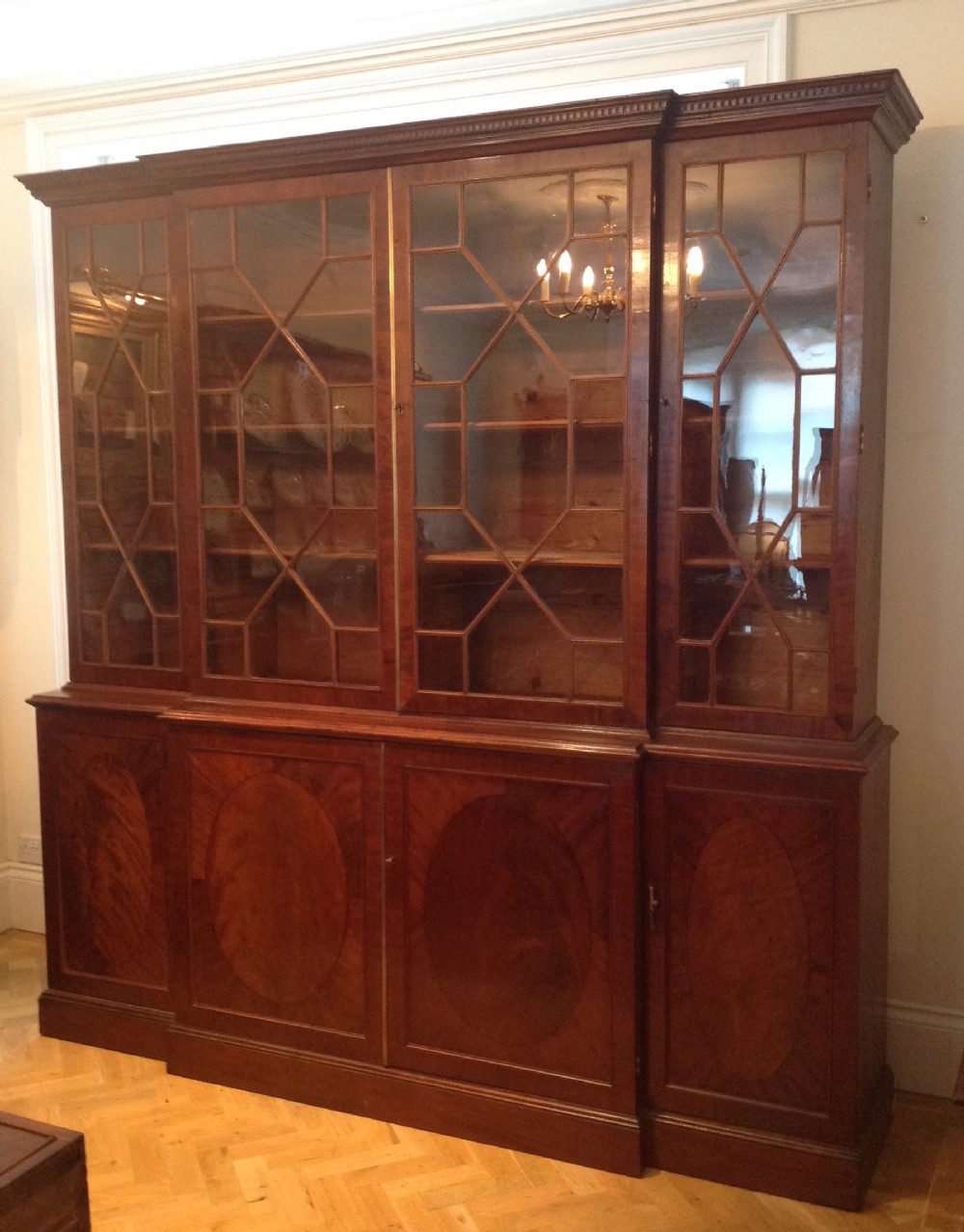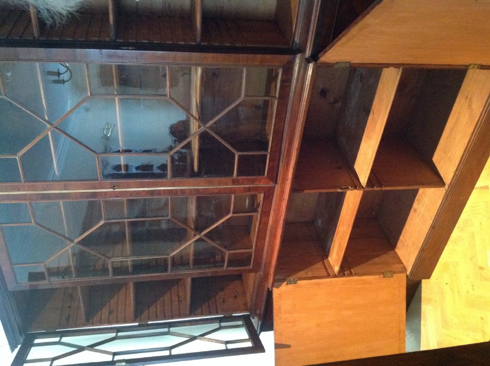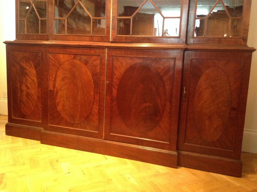 Schöner antiker edwardianischer Breakfront Bücherschrank massiv original Mahagoni 1750