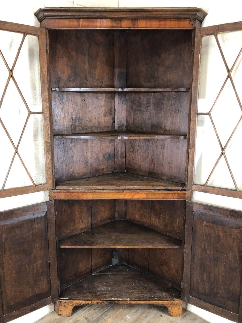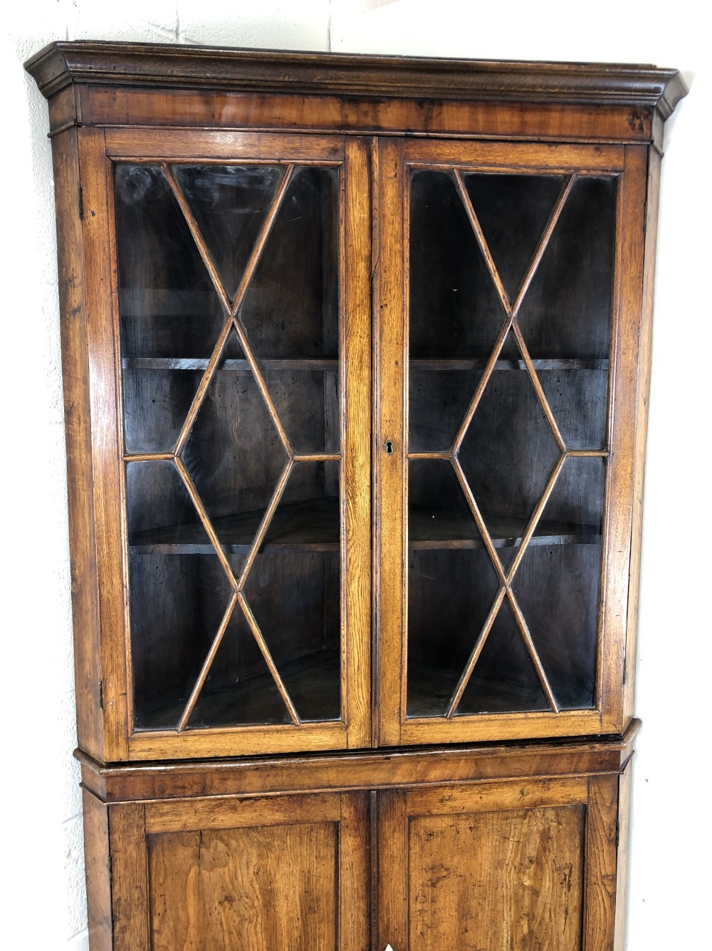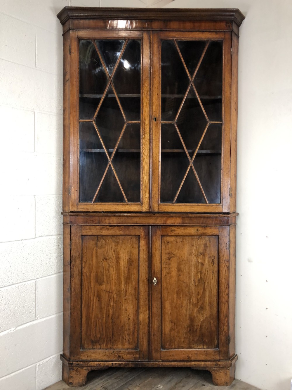 Stehender Eichenholz Eckschrank aus dem frühen 19. Jahrhunderts
