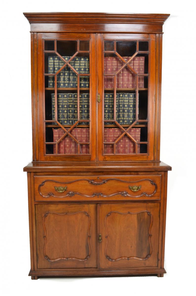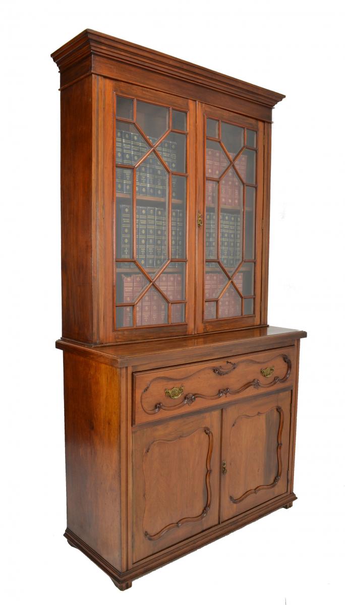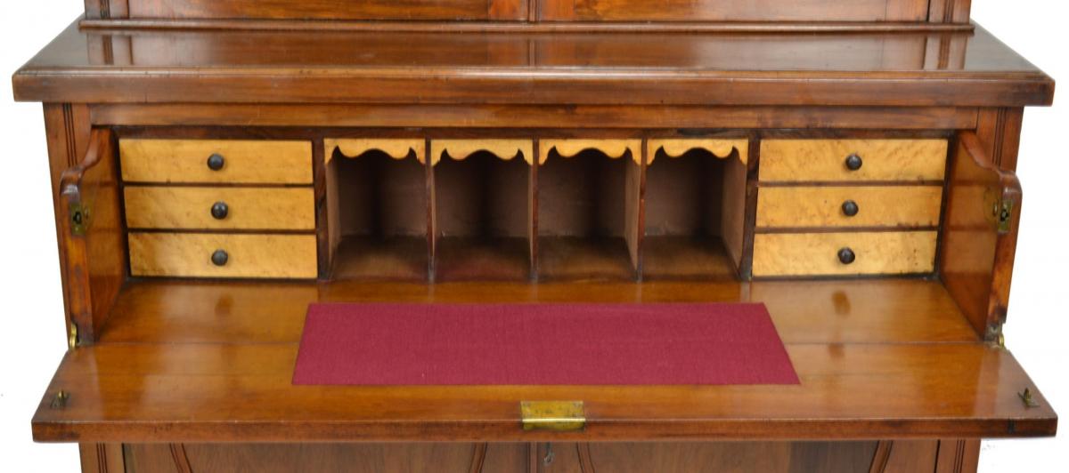 Antiker englischer Massivholz Bücherschrank Nussbaum Sekretär Bureau Bookcase
