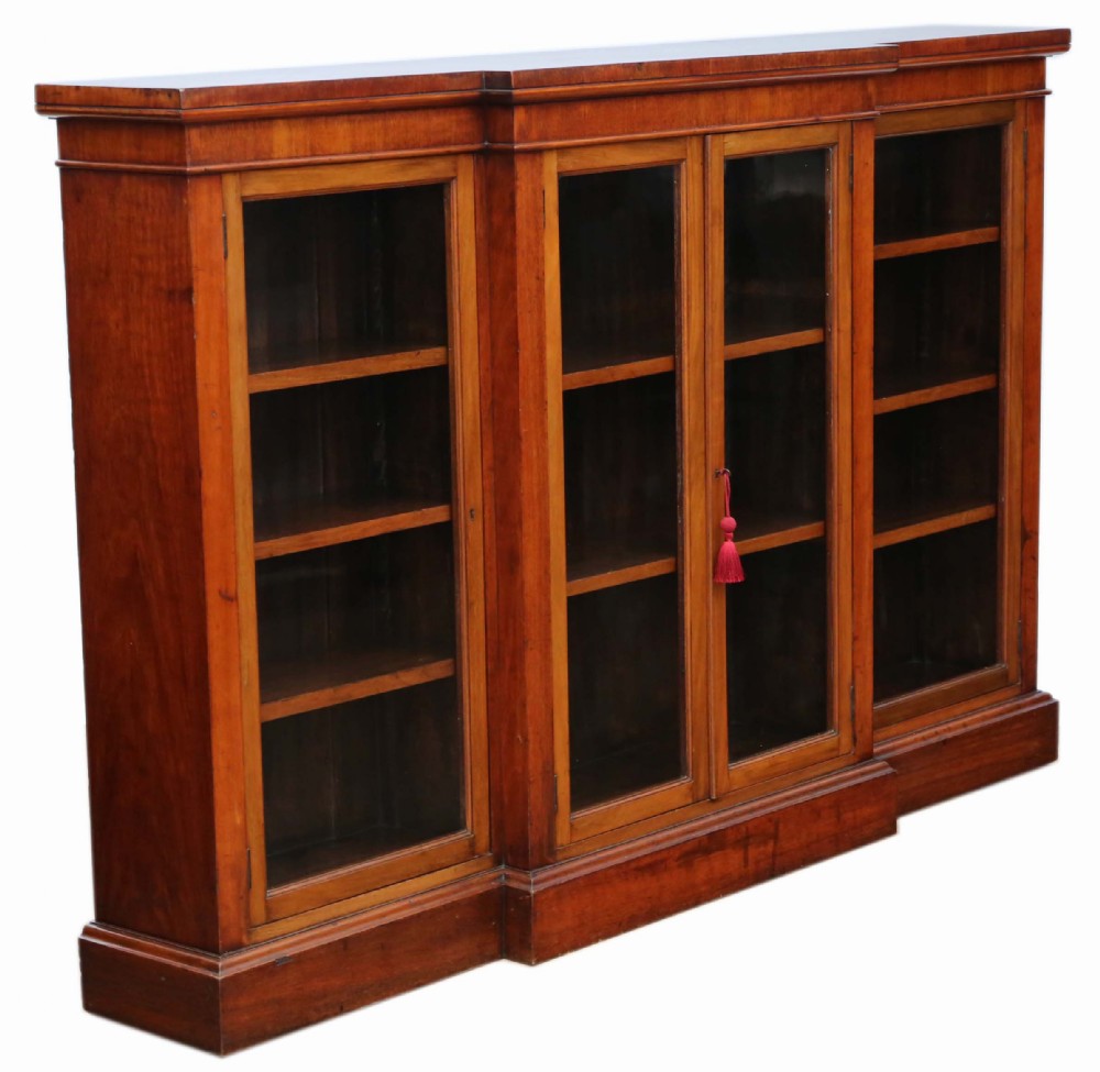 Britischer antiker Massivholz Nussbaum Bücherschrank viktorianisch