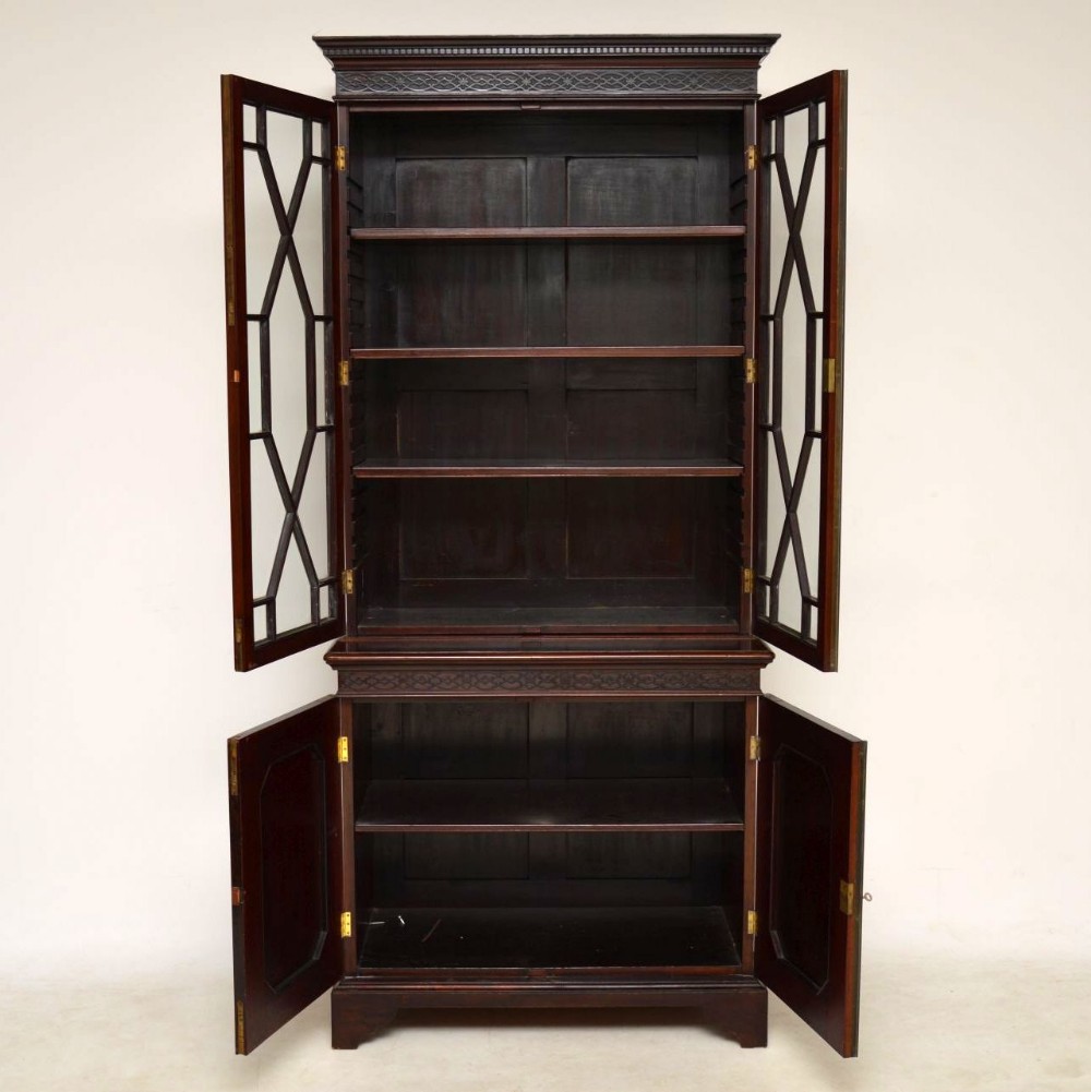 original antiker englischer Chippendale Stil Bücherschrank Mahagoni 1890