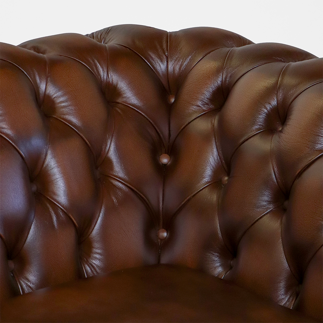 - Ein spezielles Büffelleder, das ein semi-anilines Finish aufweist. Es hat eine traditionelle Oberbeschichtung in dunkler Farbe, die abgerieben wird, um eine helle untere Schicht freizulegen. Dies verleiht dem Leder einen antiken Look mit einer gleichmäßigen Oberfläche, wenn es versiegelt wird. Natürliche Merkmale wie Wachstumsspuren, Farb-und Strukturunterschiede sind Anzeichen für die Echtheit des Leders