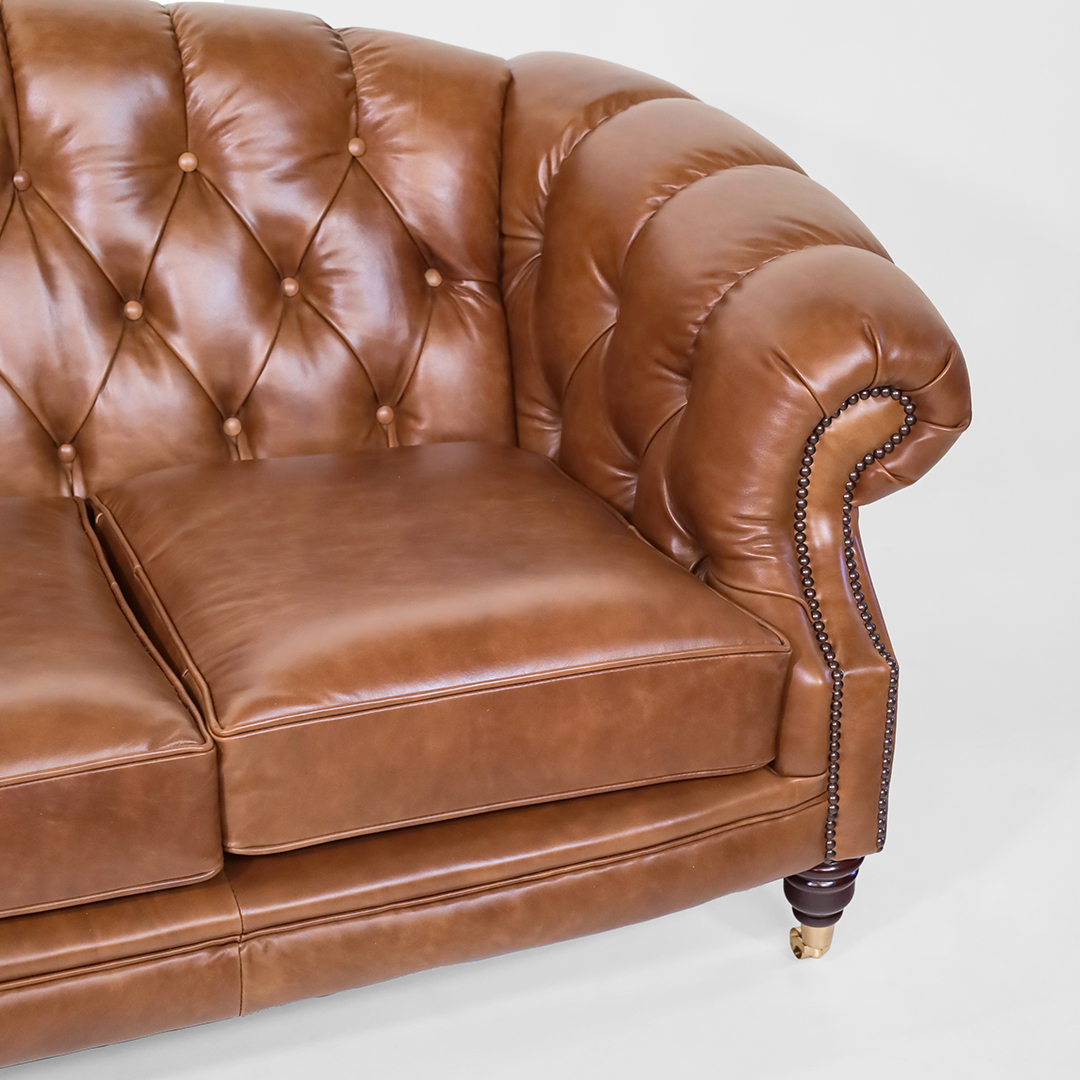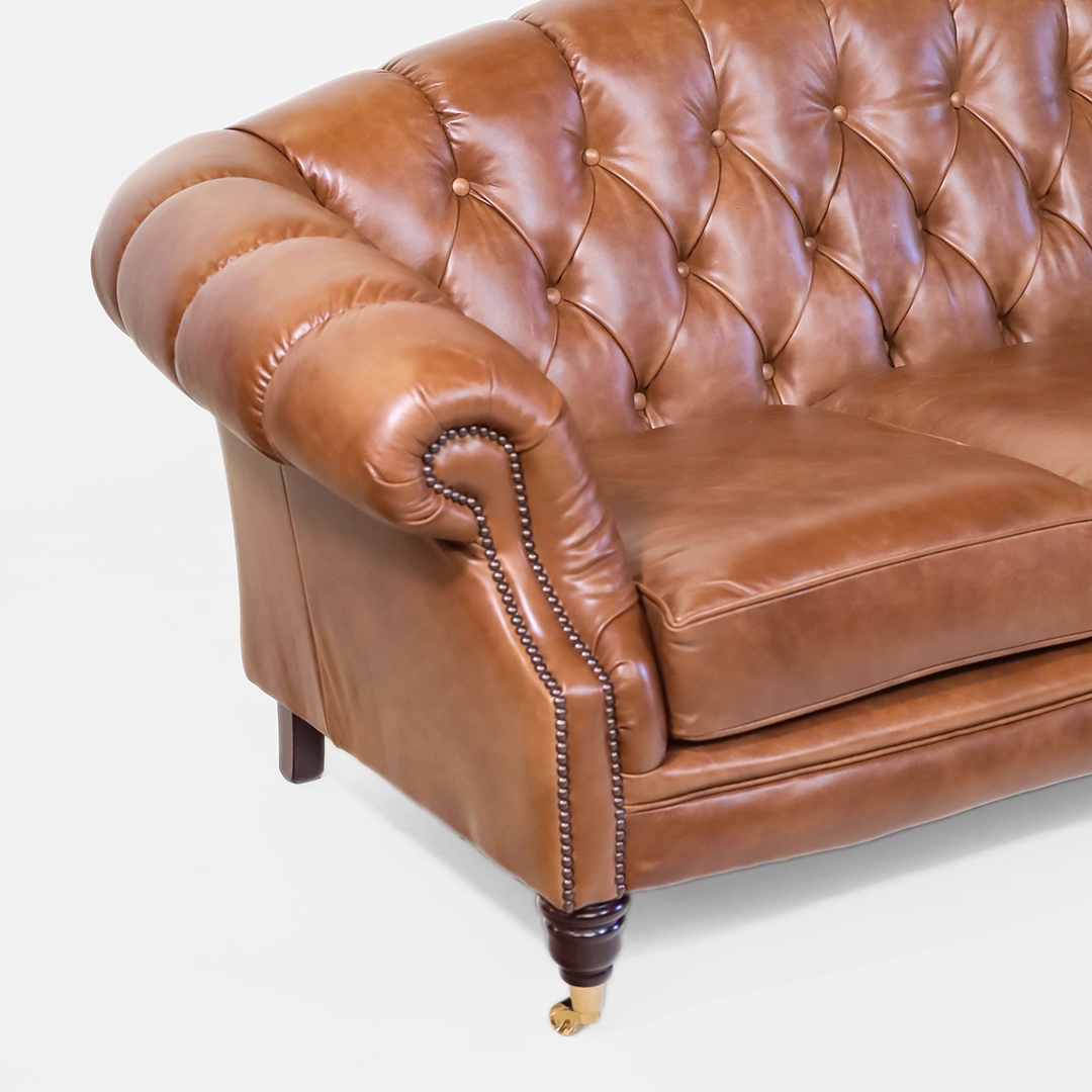 Das original englische Chesterfield Sofa "Paisley" ist ein besonderes Modell aus echtem Anilinleder und mit massivem Buchenrahmen.