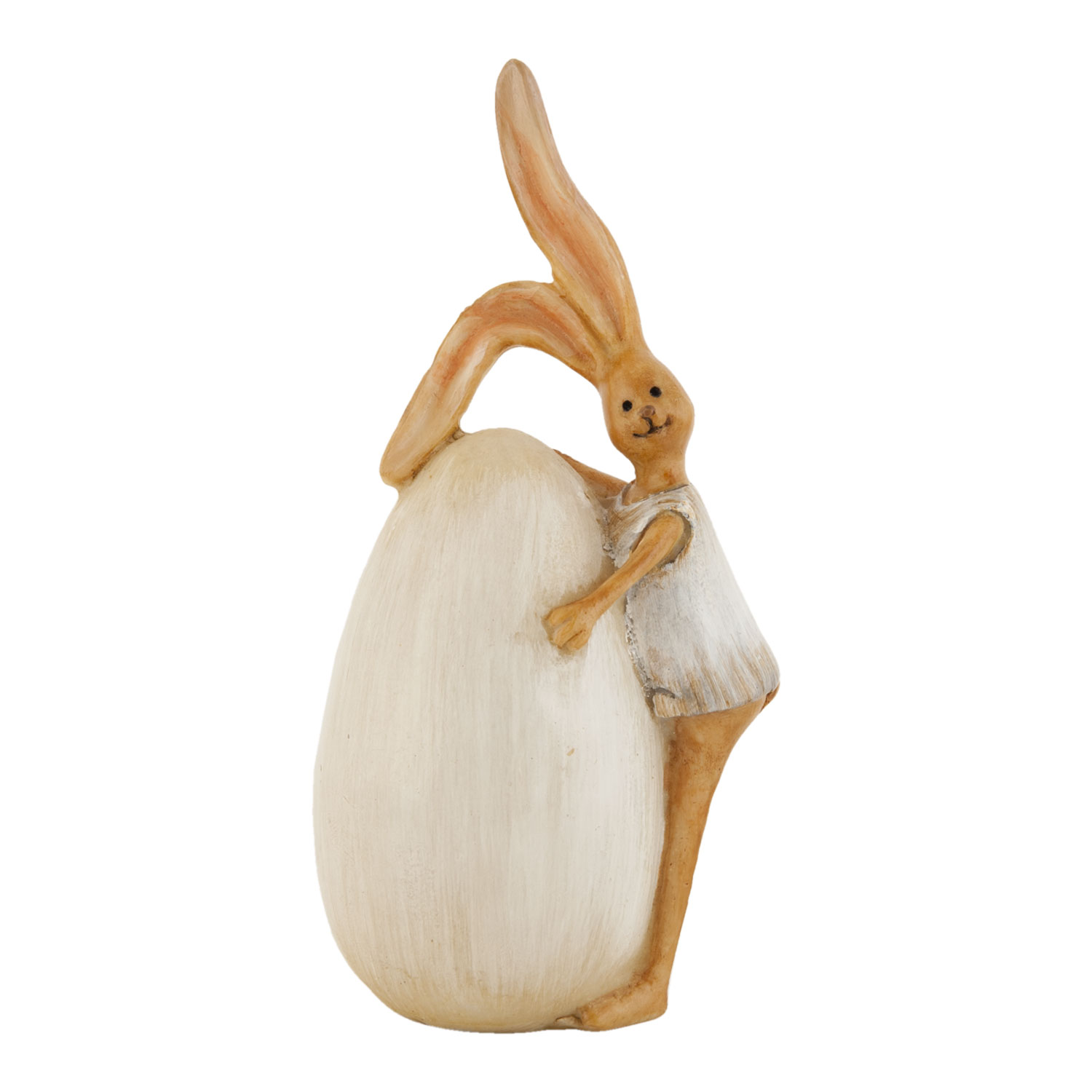 Clayre & Eef Deko Dekoration Figur Kaninchen Osterhase Hase mit Ei ca. 16 cm