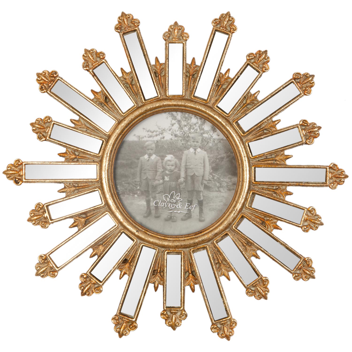 Clayre & Eef Bilderrahmen sonnenförmig goldfarbig ca. Ø 10 cm