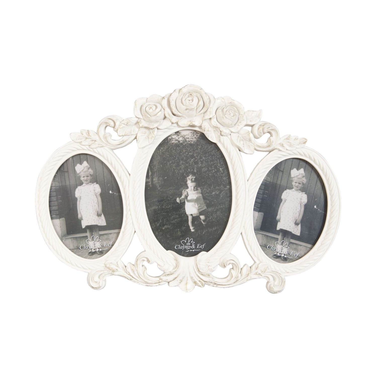 Clayre & Eef Fotorahmen für drei Fotos Bildausschnitt oval weiß ca. 33 x 22 (2 x 9 x 12 / 1 x 10 x 15) cm