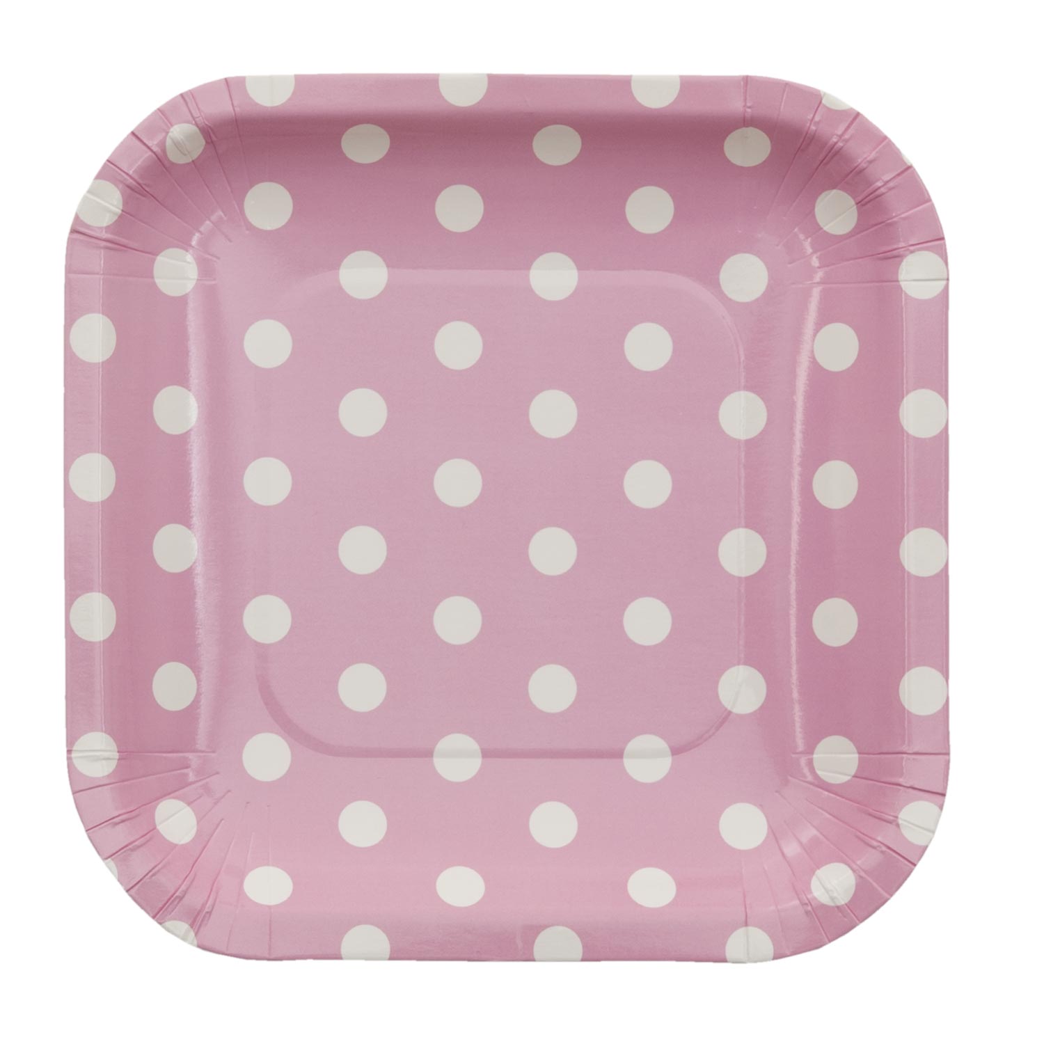Clayre & Eef Einwegteller (10 Stück) rosa Punkte weiß ca. 15 x 15 cm