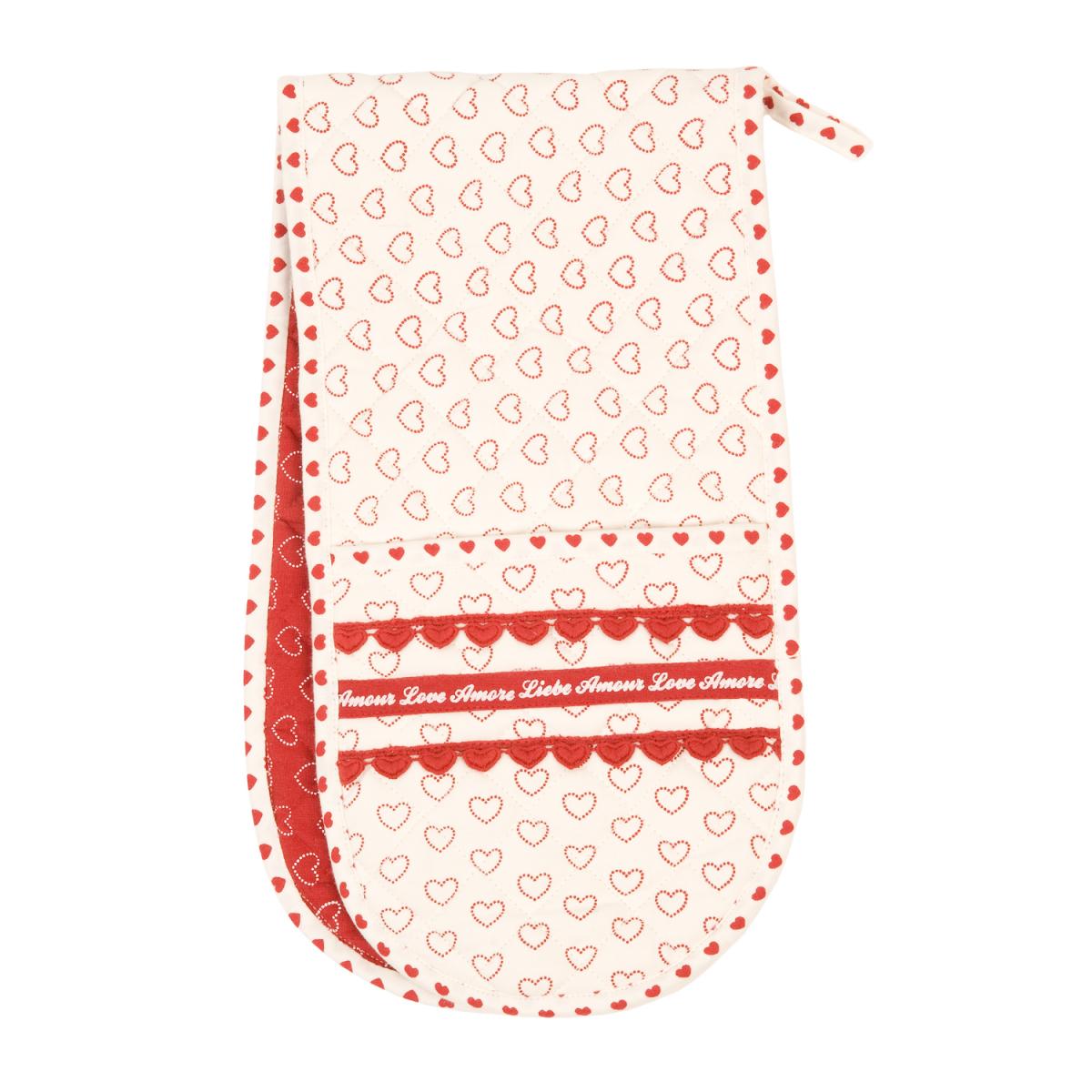 Clayre & Eef Doppelter Ofenhandschuh mit Herzmuster rot