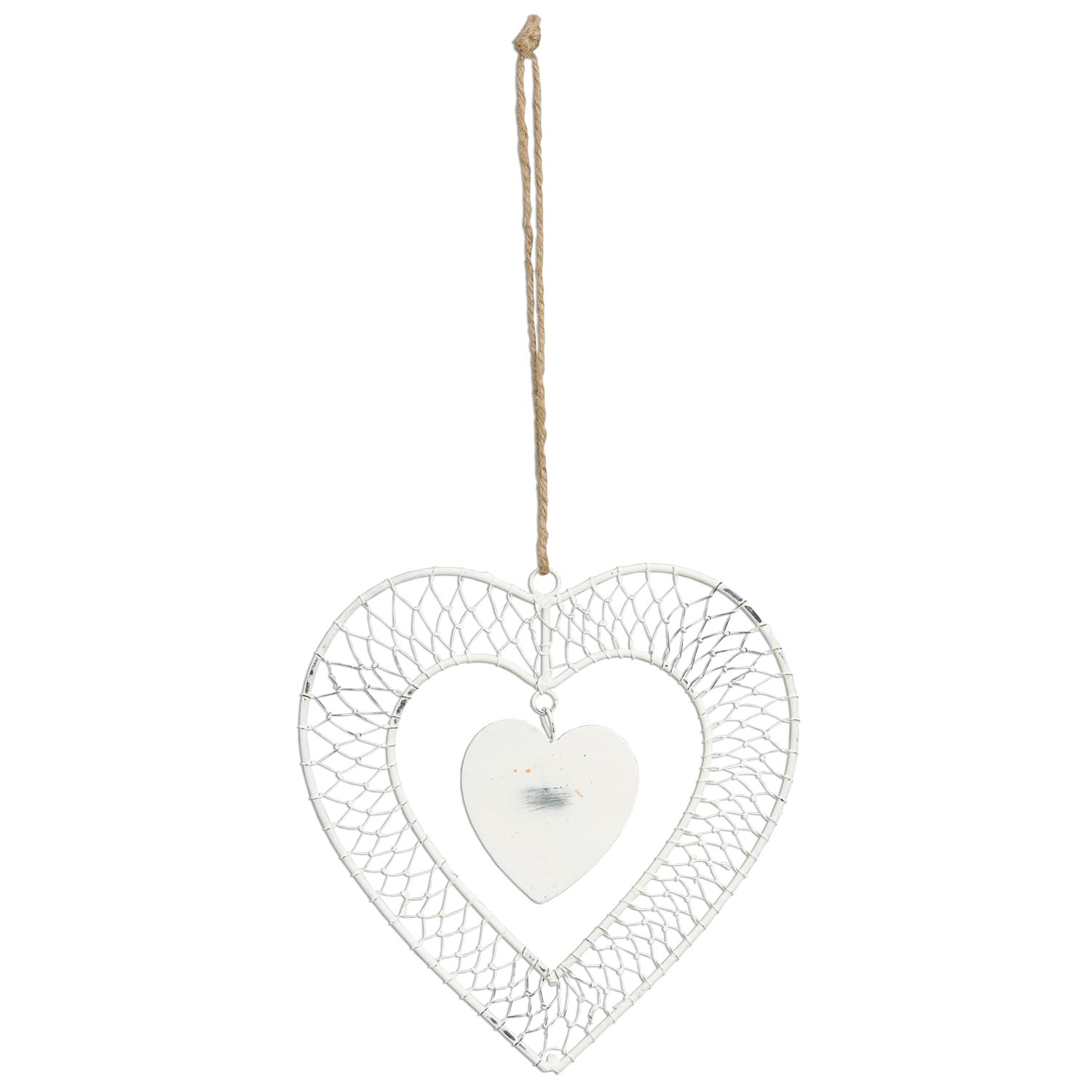Clayre & Eef Doppel-Herz aus Gittern zum Aufhängen, in weiß