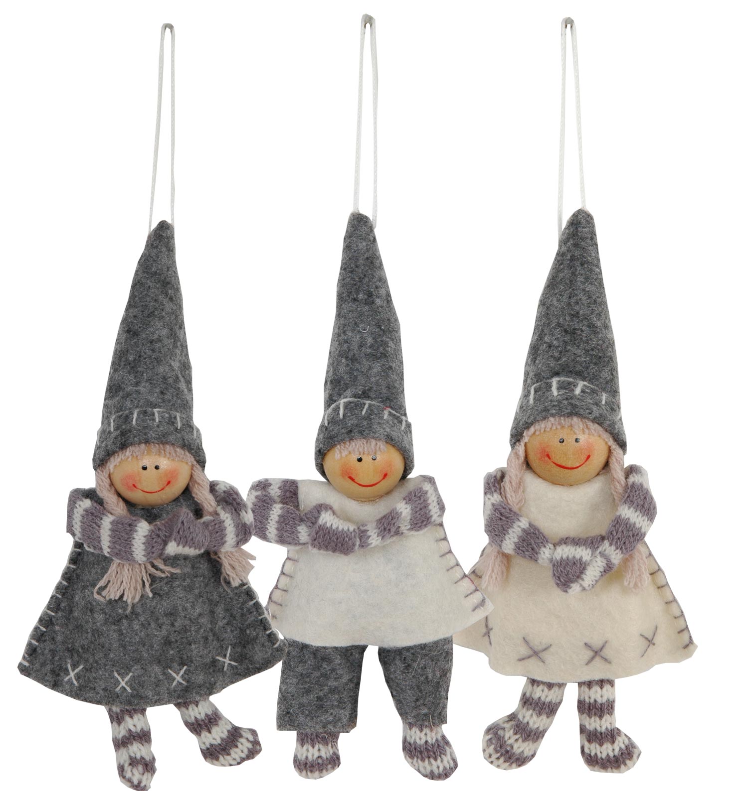 Clayre & Eef Drillings-Puppen zum Aufhängen, in grau/weiß