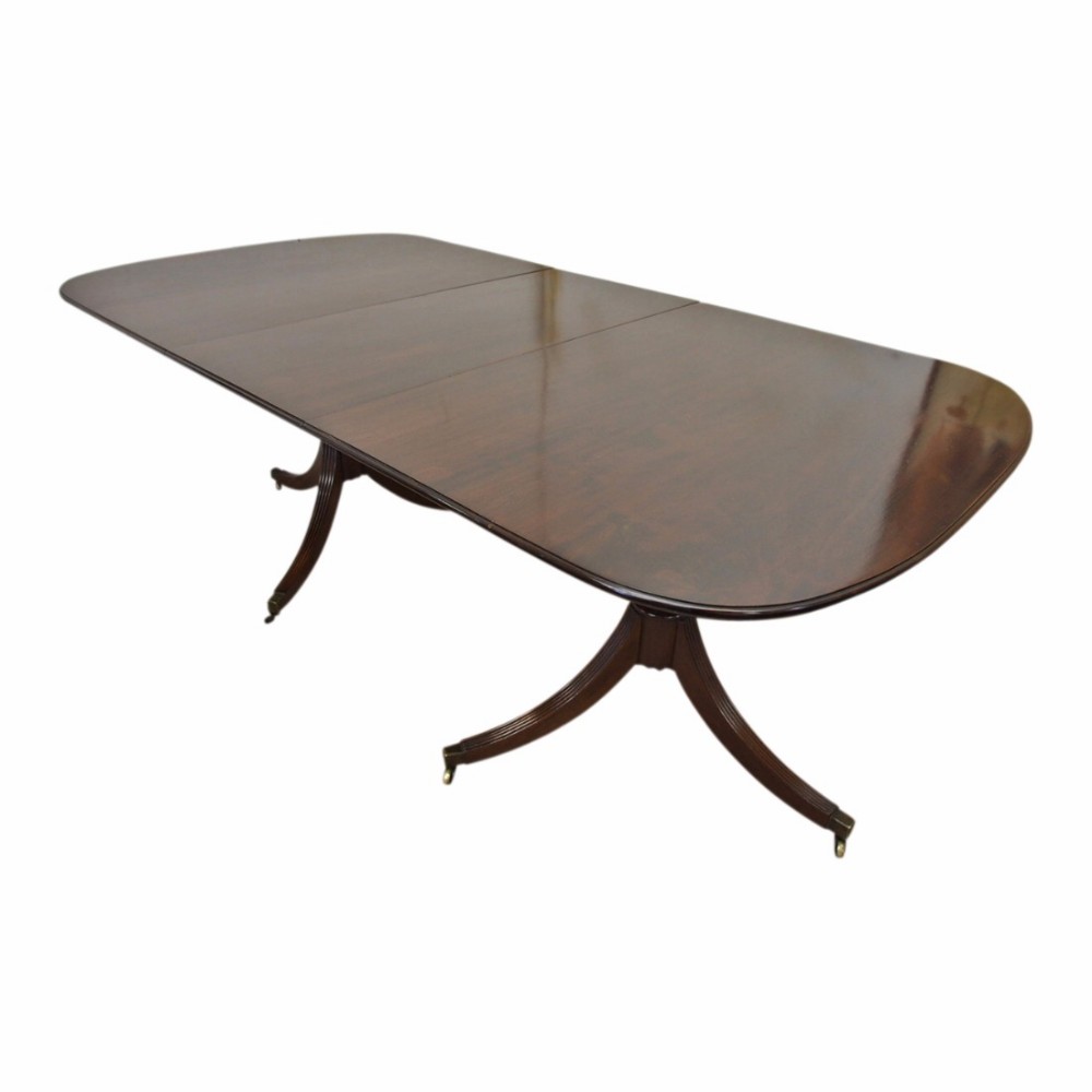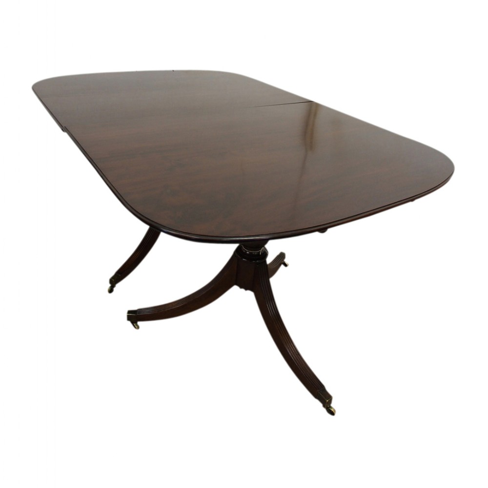 Antiker englischer Massivholz Esstisch aus Mahagoni mit zwei Säulen