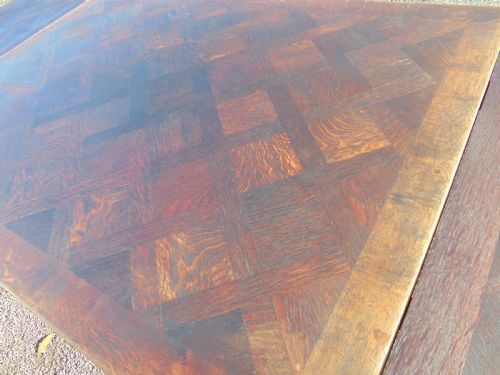 Die Fotos zeigen deutlich, dass die Bretter zum Einlegen dunkler sind als die Haupttischplatte. Dies liegt daran, dass er selten in voller Länge genutzt wurde.