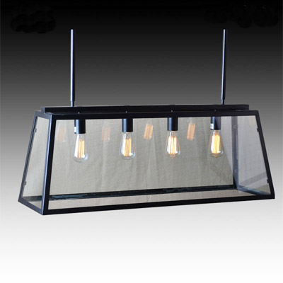 Die Deckenlampe umfasst die Maße 100x30x37cm und ist aus Metal und Glas. Sie ist in der Farbe "Antique brown" erhältlich.