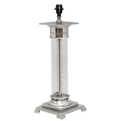 Glas Tischlampe 22x22x64cm aus Nickel und Glas.