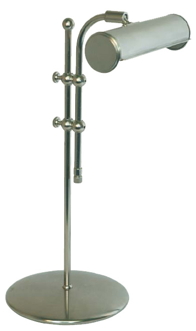 Die Beistellleuchte Nickel matt hat einen verstellbaren, runden Arm.