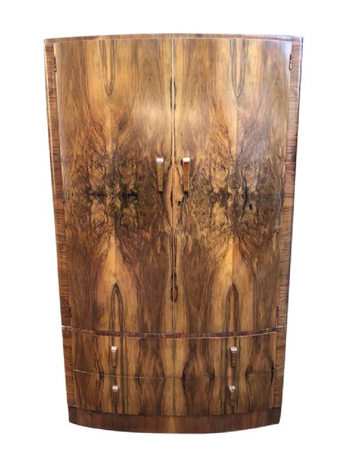 Antiker Art Deco Nussbaum Kleiderschrank englisch Bowfront ca 1930