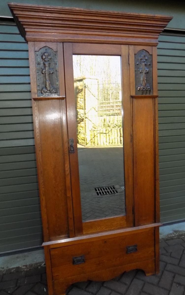 Britischer Arts & Crafts Kleiderschrank Eiche antik ca 1900