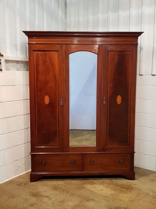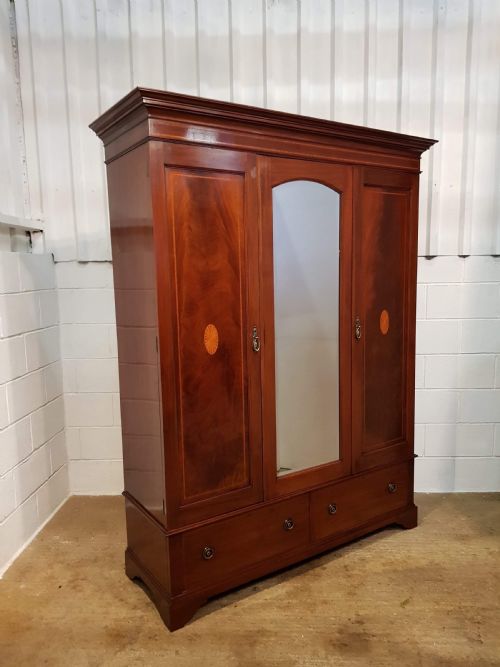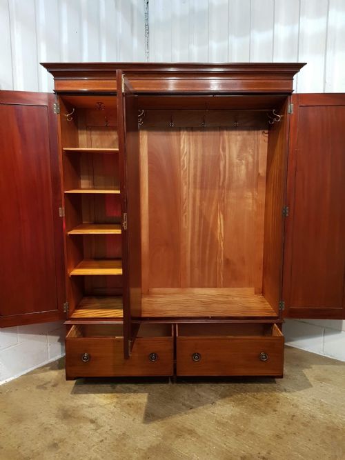 Edwardianischer antiker Mahagoni Kleiderschrank britisch ca 1900