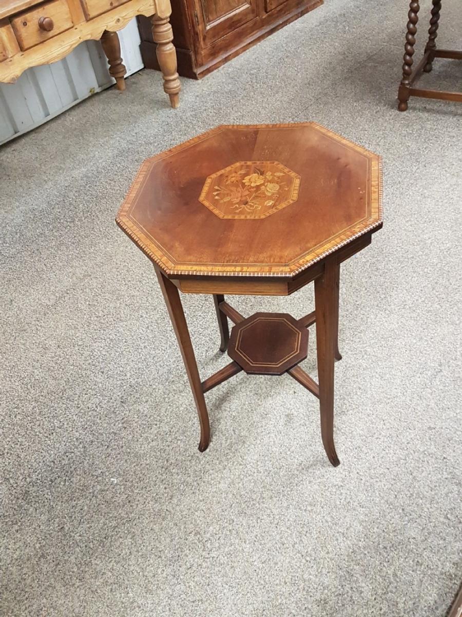 Edwardianischer Beistelltisch achteckig aus Mahagoni Massivholz antik