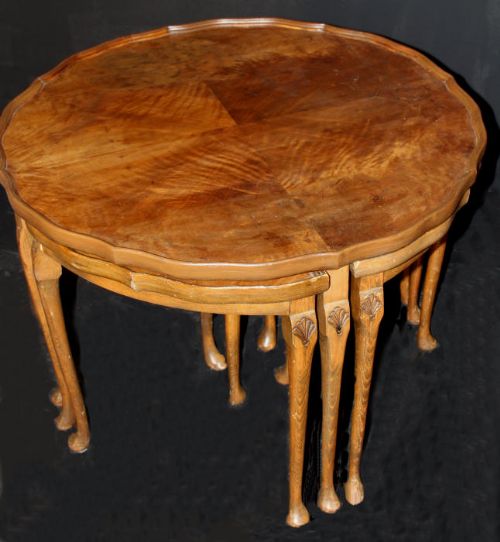 Britische antike Art Deco Nussbaum Beistelltische Set 4 Stk.
