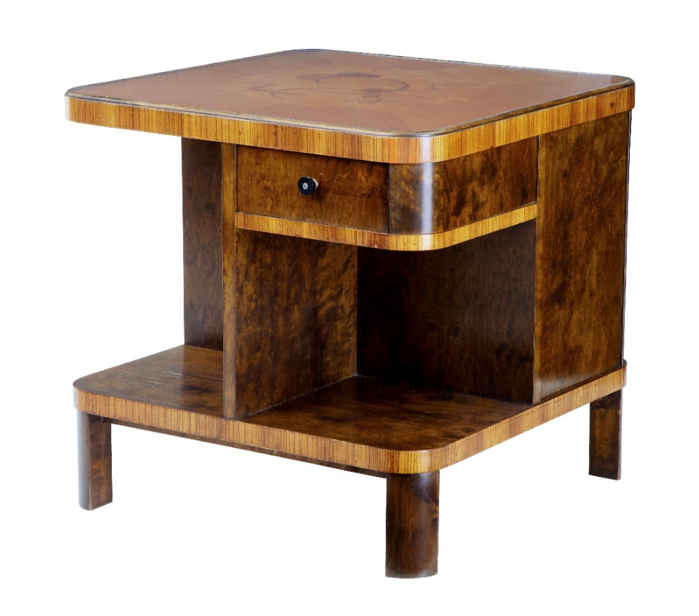 Englischer Art Deco Birken Beistelltisch antik ca 1930