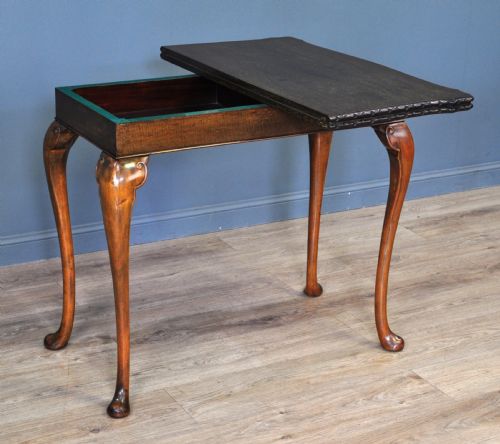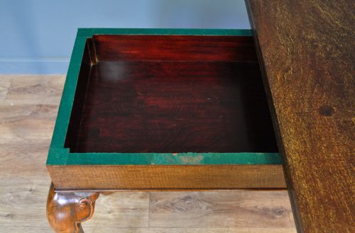 Dieser schöne Kartentisch bleibt in sehr gutem, solidem Zustand mit nur sehr kleinen Oberflächenmarkierungen, die dem Alter und der Nutzung entsprechen, einschließlich einiger sehr kleiner Abdrücke und leichter Kratzer auf der Oberseite.