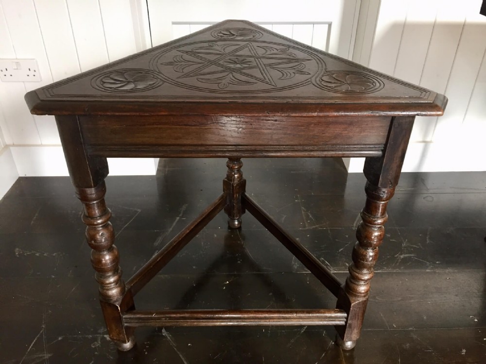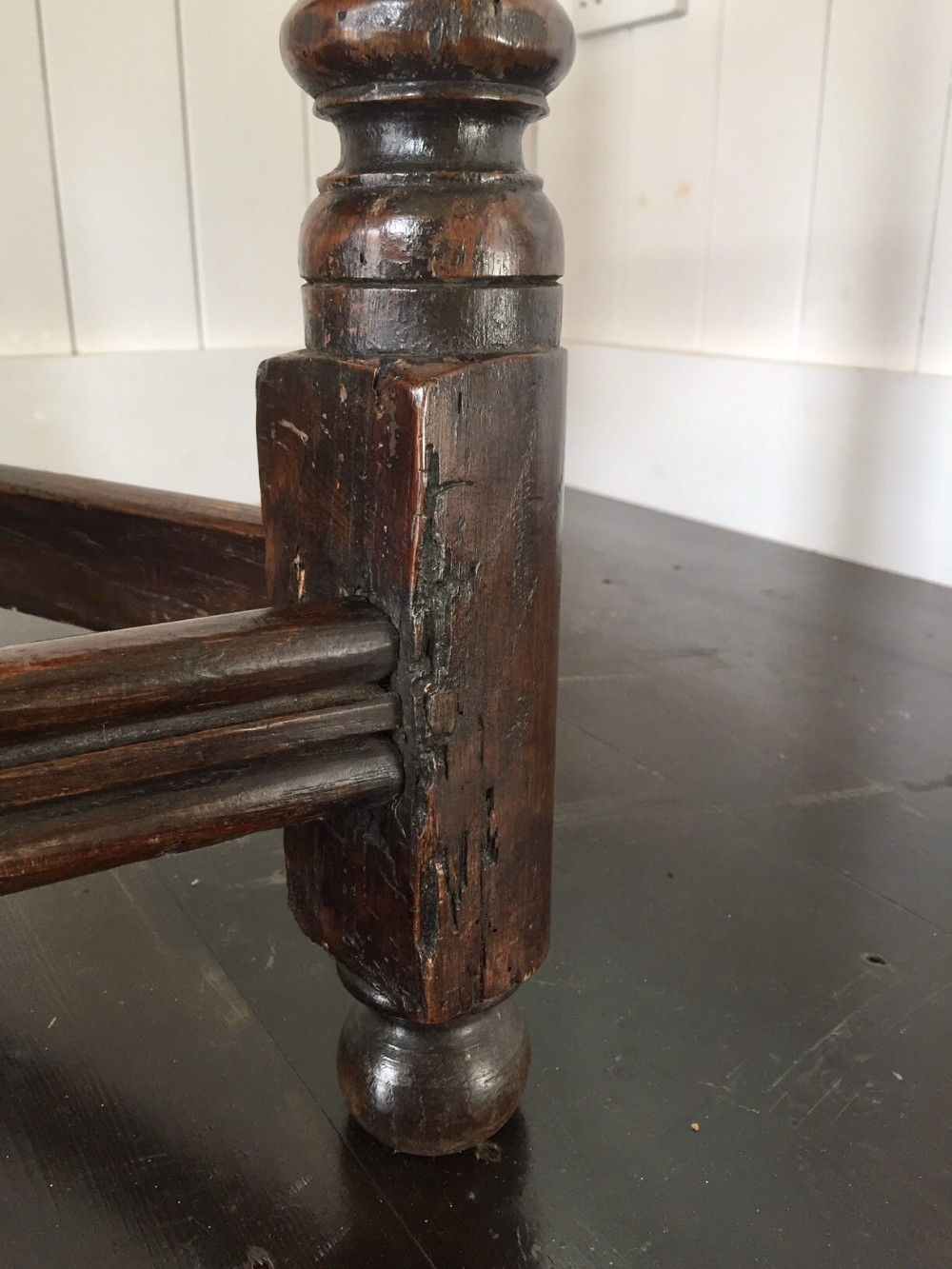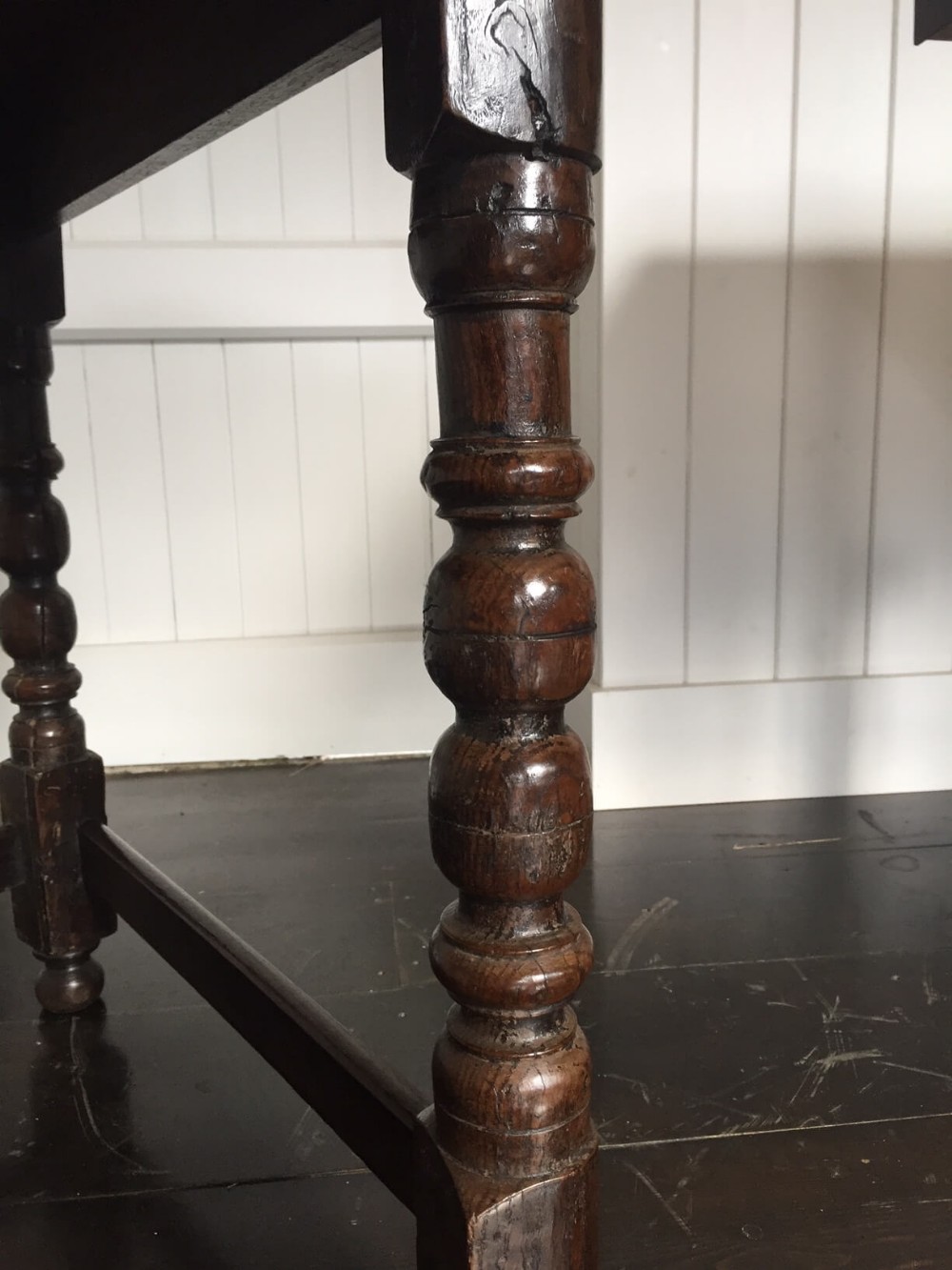 Leichte Gebrauchsspuren und Holzwurmlöcher in den Beinen, sonst sehr guter Zustand.