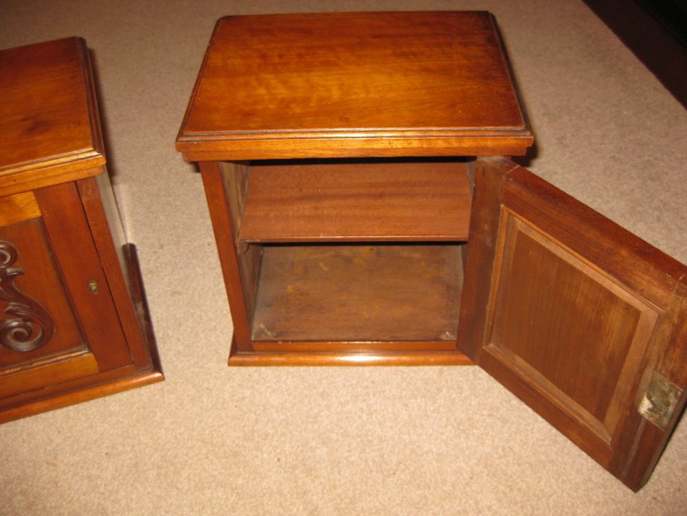 Original britische Nussbaum Schränkchen Massivholz Nachttische antik
