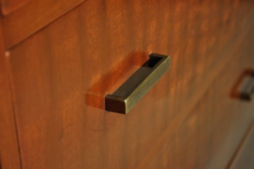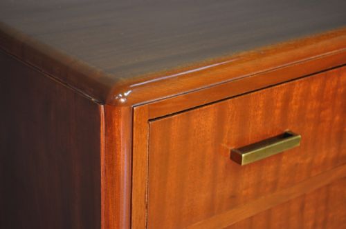 Die Schubladenfronten sind mit Mahagoni mit feiner Maserung furniert.
