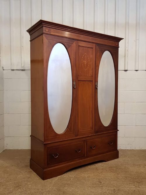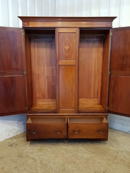 Antiker edwardian Mahagoni Doppel Kleiderschrank 1900