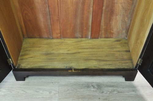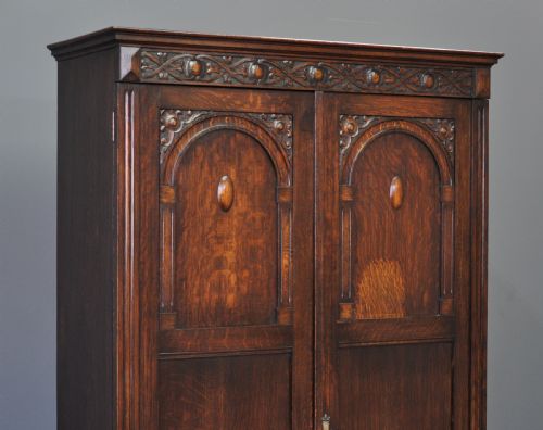 Diese schöne antike Garderobe befindet sich in einem sehr guten, soliden Zustand mit nur sehr geringen alters- und gebrauchsbedingten Oberflächenabdrücken, einschließlich ein paar kleinen Einkerbungen und leichten Kratzern im Finish. Die äußere Oberfläche weist ein paar leichtere Flecken auf, und die innere Ablage weist eine leichte Verbiegung zur Mitte hin auf.