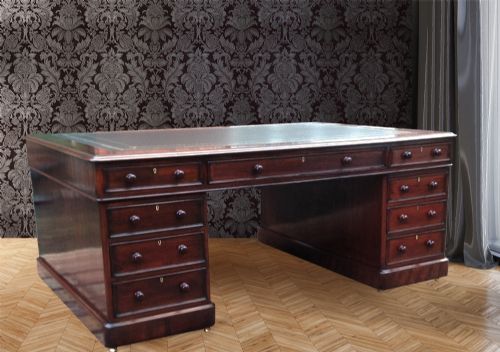 Antiker Massivholz Partner Schreibtisch Mahagoni englisch ca 1860