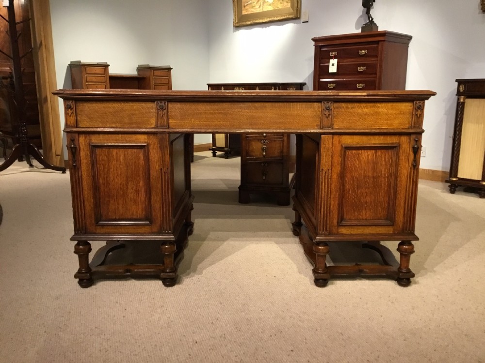 Dieser Schreibtisch befindet sich in einem hervorragenden Originalzustand, gereinigt und gewachst. Es gibt eine alte Reparatur an der Leiste auf der Rückseite.