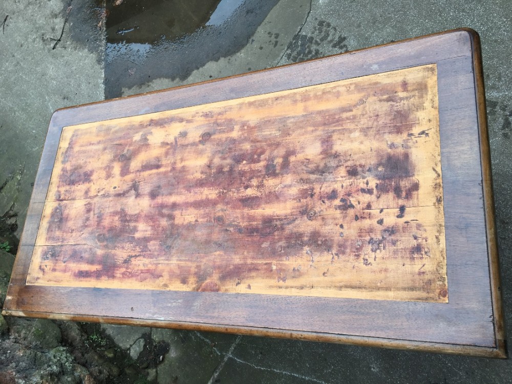Lederfläche fehlt leider, aber es wird vor Versand mit einem grünen Leder mit Goldrand ersetzt. Keine Makel und die Schubladen laufen gut. Wird noch einmal poliert.