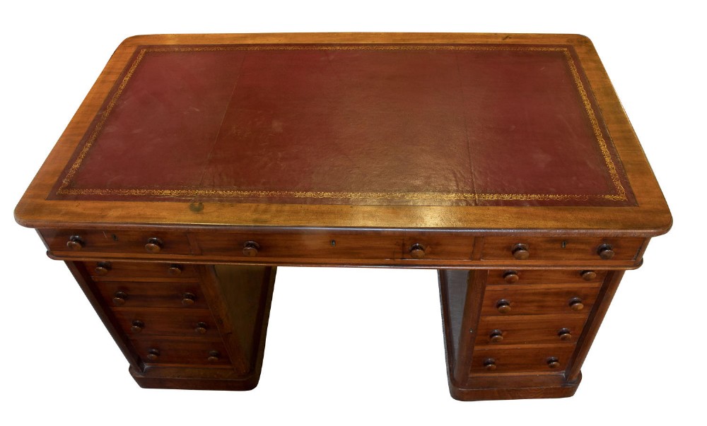 Massivholz Mahagoniholz Schreibtisch Pedestal Desk antik viktorianisch victorian