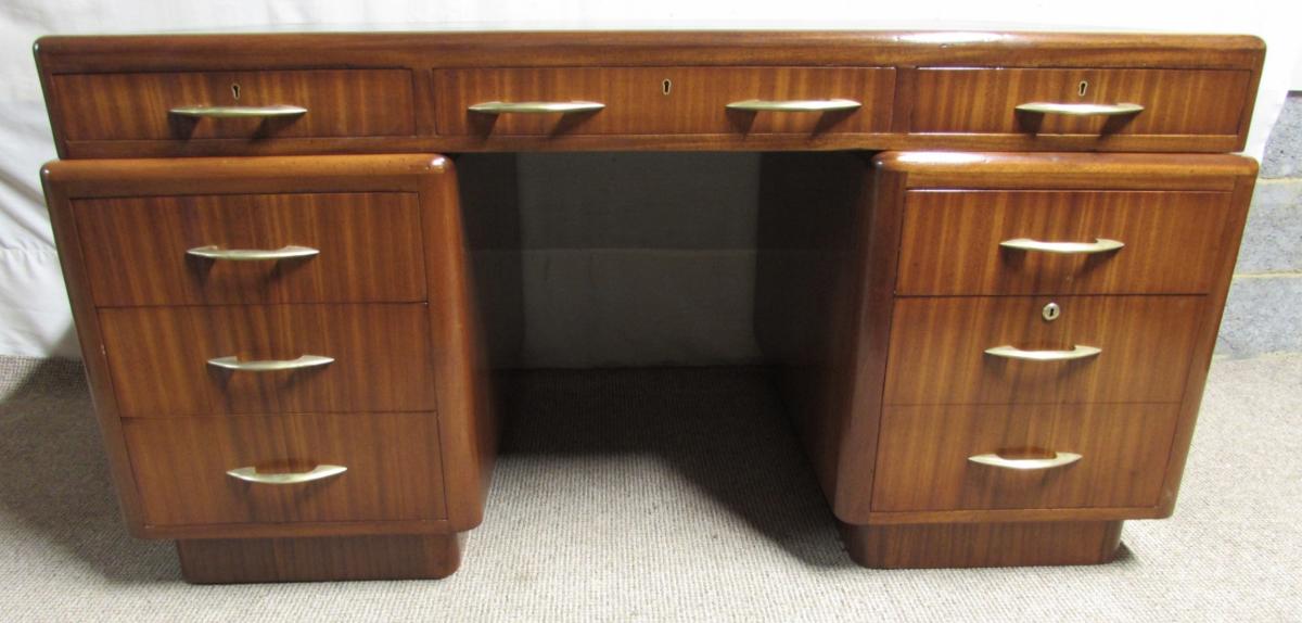 Art Deco Nussbaum Schreibtisch / Pedestal Table