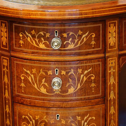Dieser Schreibtisch ist mit schönen Intarsien mit Urnen, Girlanden und Glockenblumen erstickt.