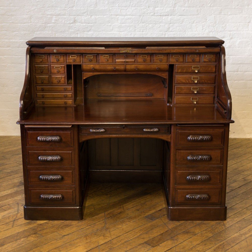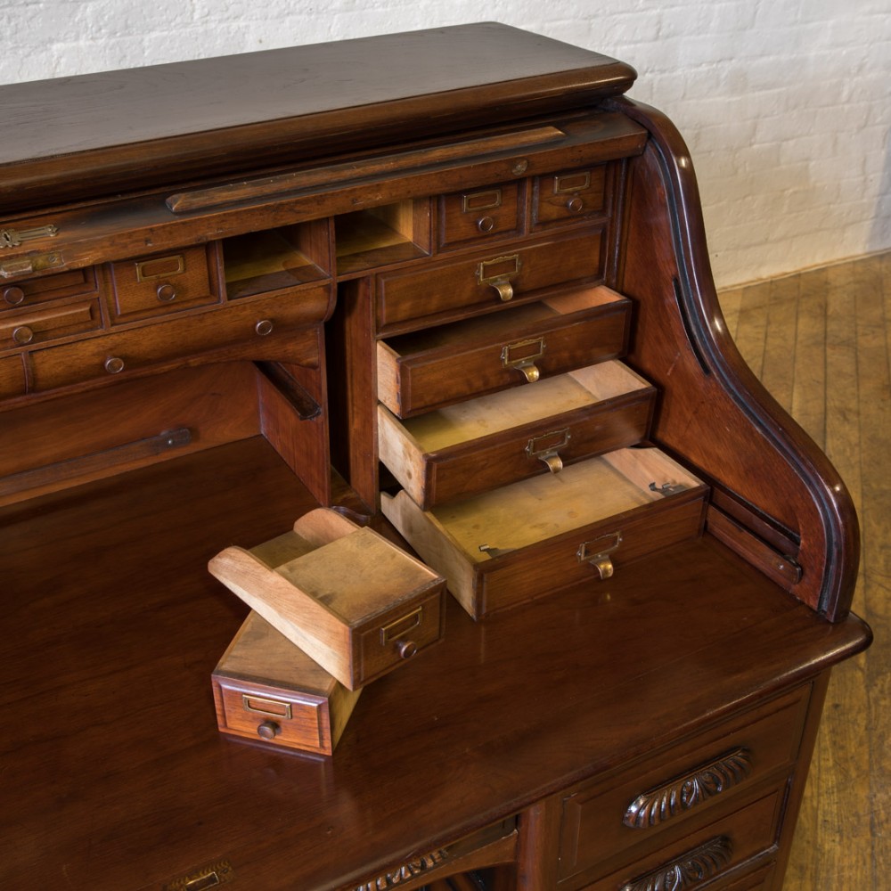 Englischer antiker Massivholz Schreibtisch Nussbaum Rolltop Desk