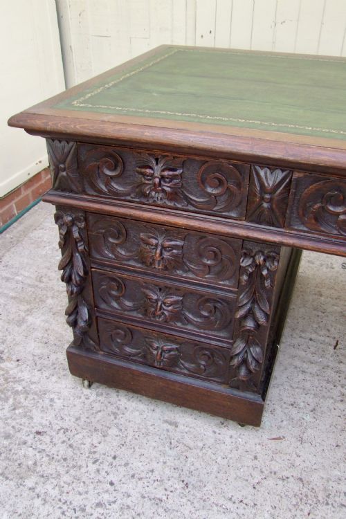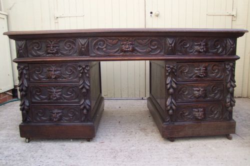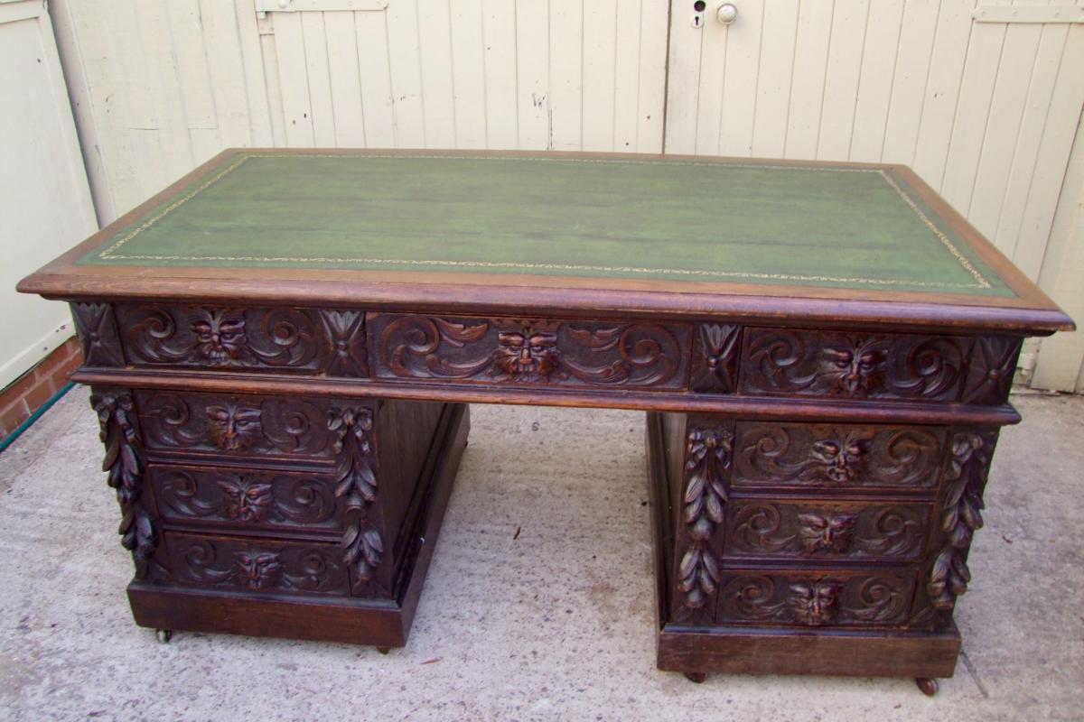 Massiver Schreibtisch Eiche Schnitzereien original britisch Büro
