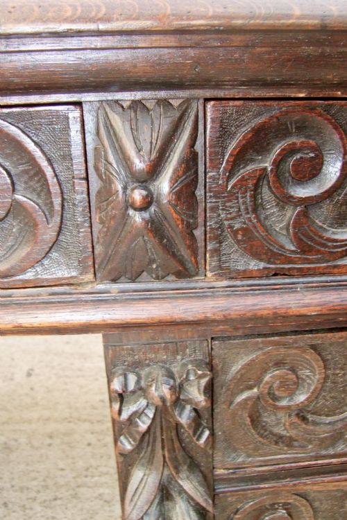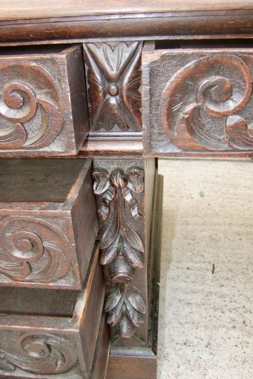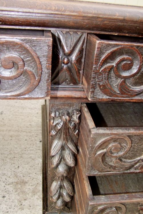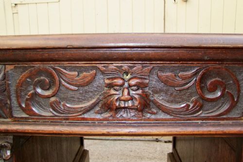 Englischer Antiker geschnitzter Eichen Schreibtisch ca. 19. Jh.