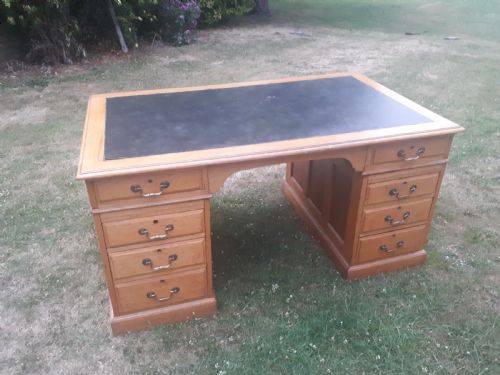 Original britischer Massivholz Schreibtisch Eiche Echtleder antik
