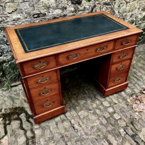 Englischer antiker Massivholz Schreibtisch Pedestal Desk Nussbaum edwardianisch