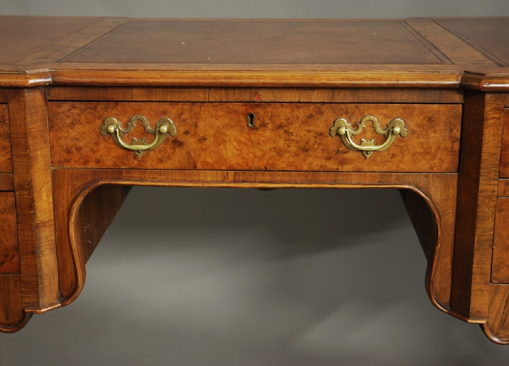 Großartiger Queen Anne Style Antiker Nussbaum Schreibtisch englisch 1920