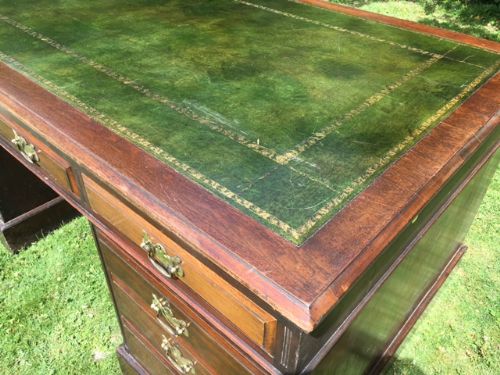 Original antiker britischer Nussbaum Massivholz Schreibtisch von Maple & Co