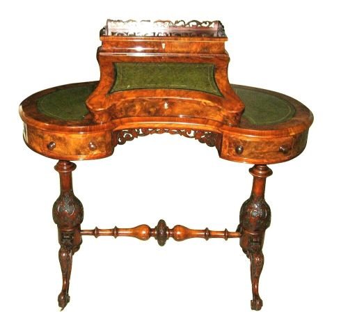 Attraktiver viktorianischer antiker Nussbaum Schreibtisch Damenschreibtisch englisch 1850