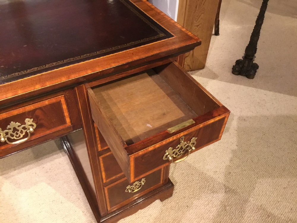 Original edwardianischer antiker Mahagoni Pedestal Schreibtisch ca 1900