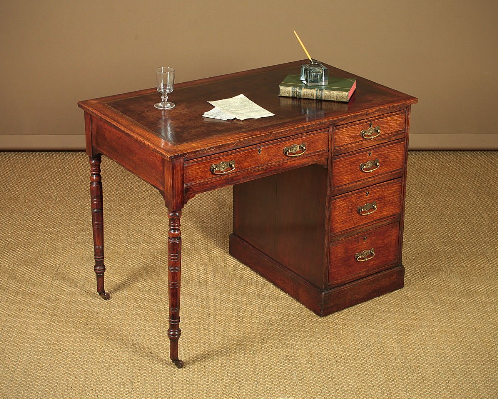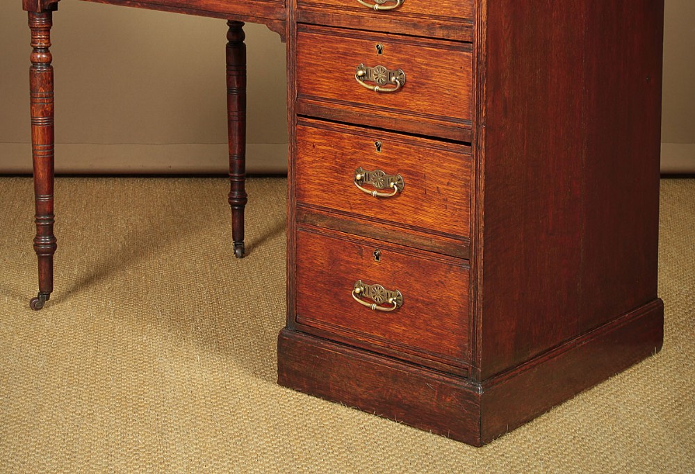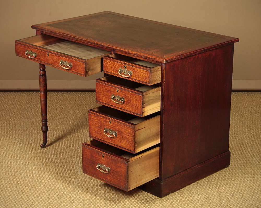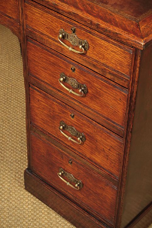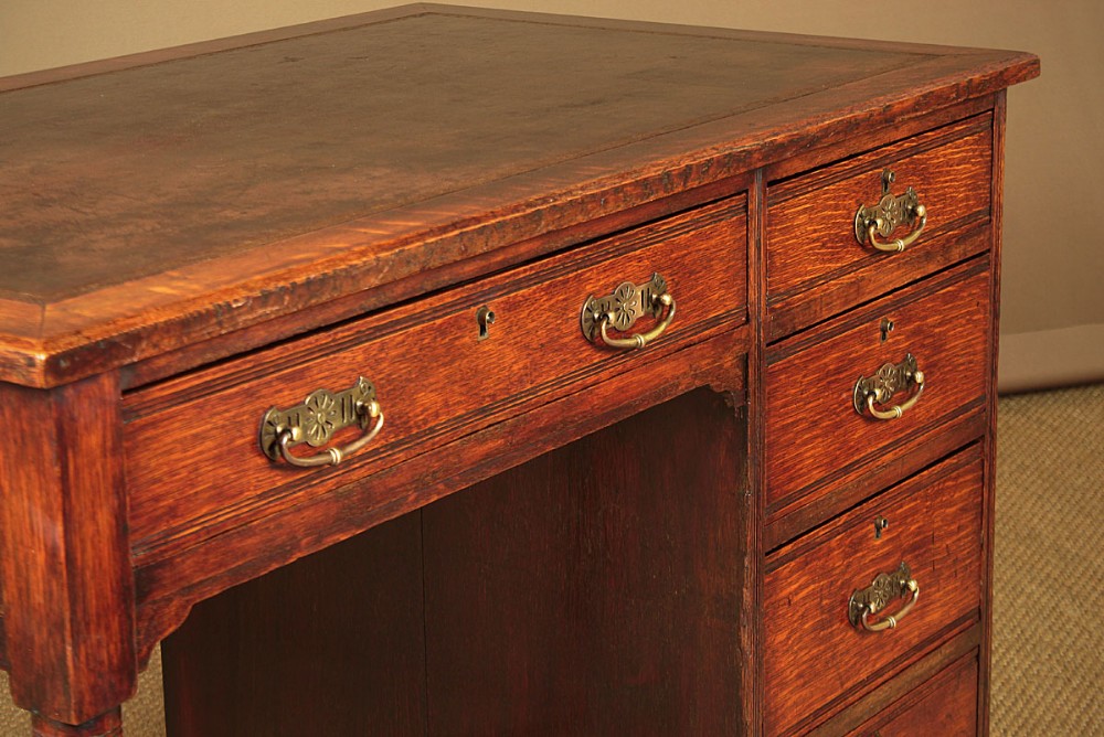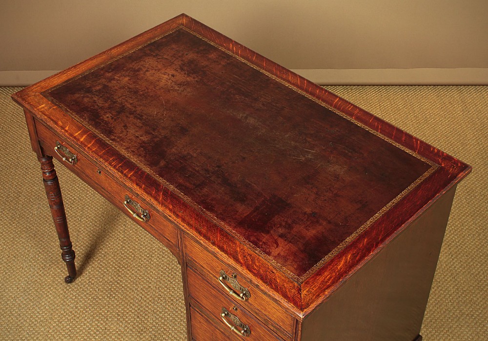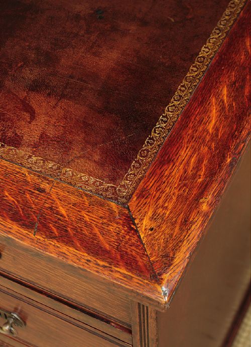 antiker Eichenschreibtisch, Lederauflage, um 1900, edwardian Stil