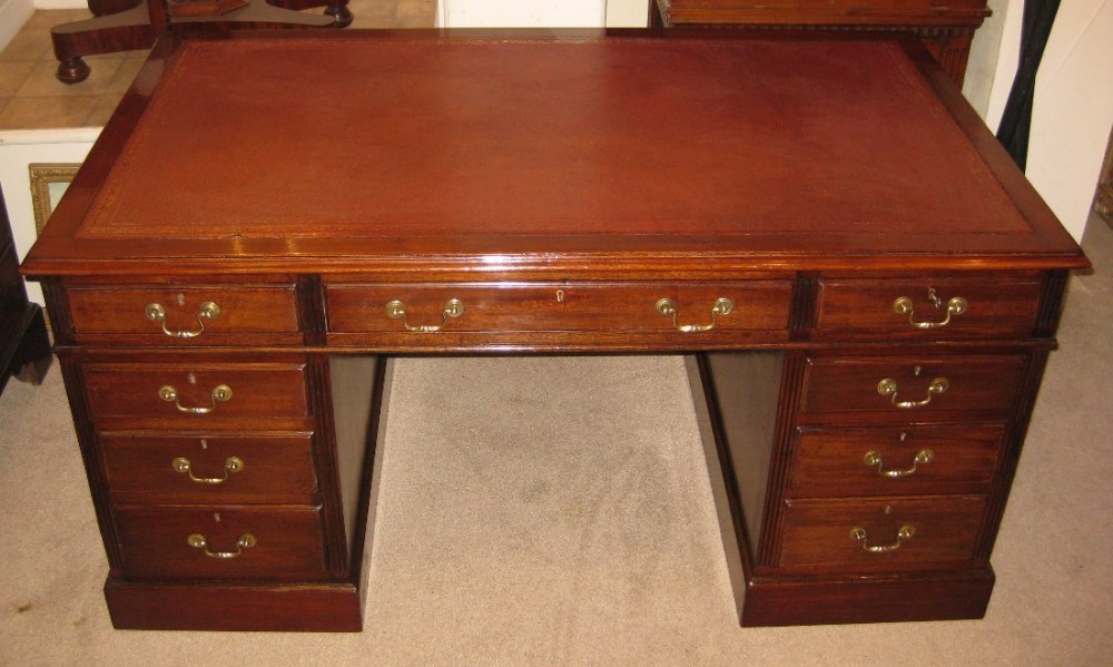 Viktorianischer antiker Mahagoni Schreibtisch Pedestal desk englisch 1910