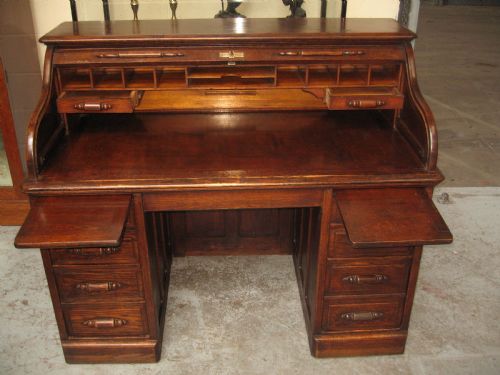 Englischer antiker Rolltop Massivholz Sekretär Eiche