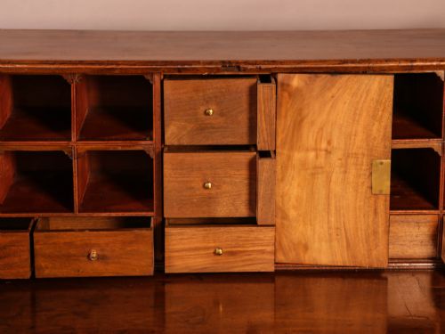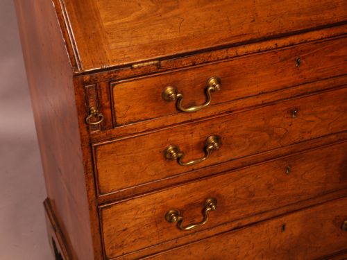 Er hat viele geheime Schubladen, eine angenehme Farbe, die leicht verblasst, aber unberührt ist, einen Schlüssel und ein Schloss.
